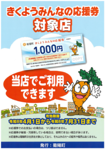 菊陽町 みんなの応援券 がご利用いただけます☺️